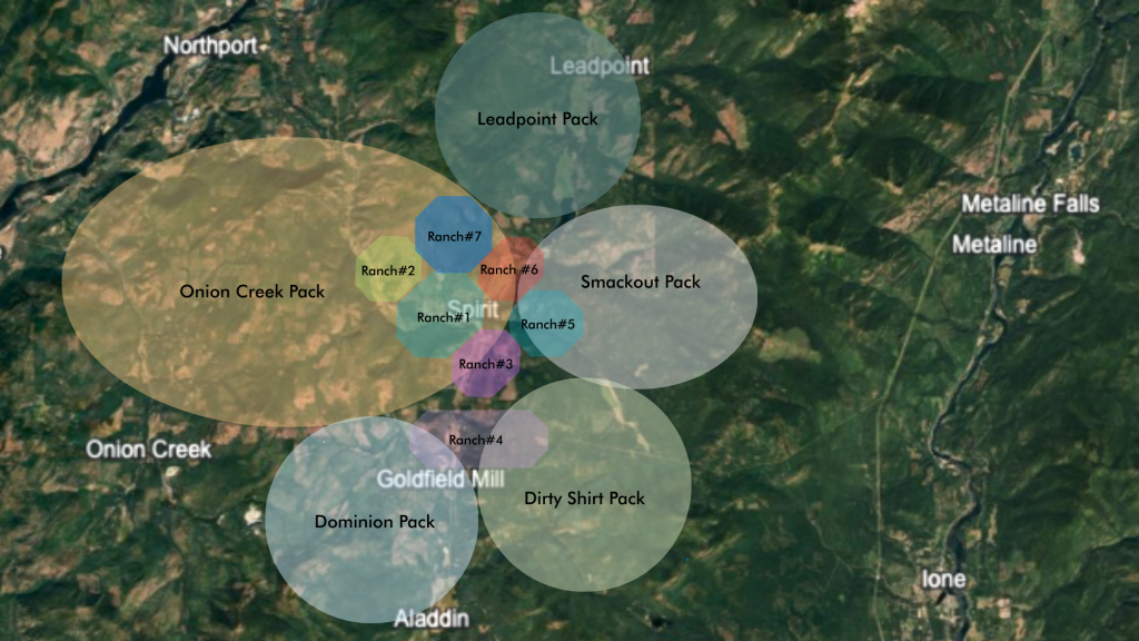 Project GRIPH’s Co-Thriving Carnivore Corridor Co-Op (4C) is a bold, field-based initiative connecting seven partner ranches in northeastern Washington, home to over 2,000 cattle, over 41,000 acres of private and public land, and home to at least five wolf packs. Together, we are pioneering a new standard for predator–livestock relations grounded not in tolerance or control, but in care, communication, presence, and co-thriving